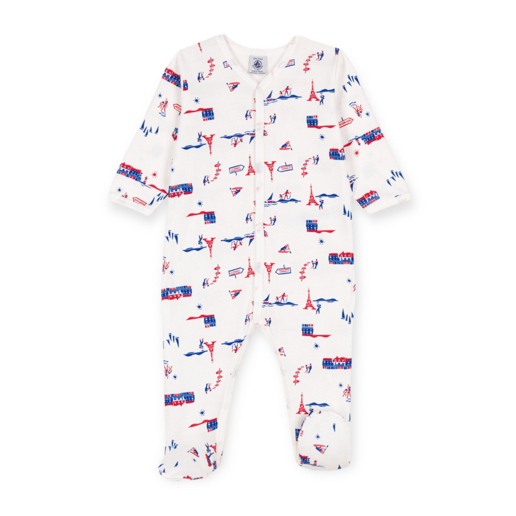 Petit Bateau Front Snap Printed Footie ~ White/Parisian