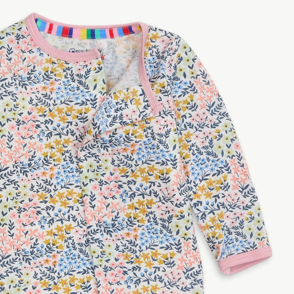 A soft, stylish all-day and all-night wardrobe staple with smart magnetic fasteners that makes changing time painless. With our no over-the-head design, simply open the outfit, insert baby, and BOOM, DONE! - the footie practically closes itself. Machine wash as directed.