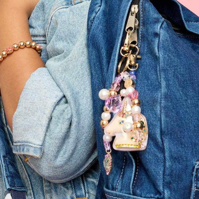 The Super Unicorn Bag Charm is your daily reminder that you’re strong, sparkly, and one of a kind! Featuring a glossy white unicorn with rainbow gem details, dreamy purple undertones, and a dangling crystal bead, this charm is made to stand out. Clip it on and let the magic follow you everywhere!