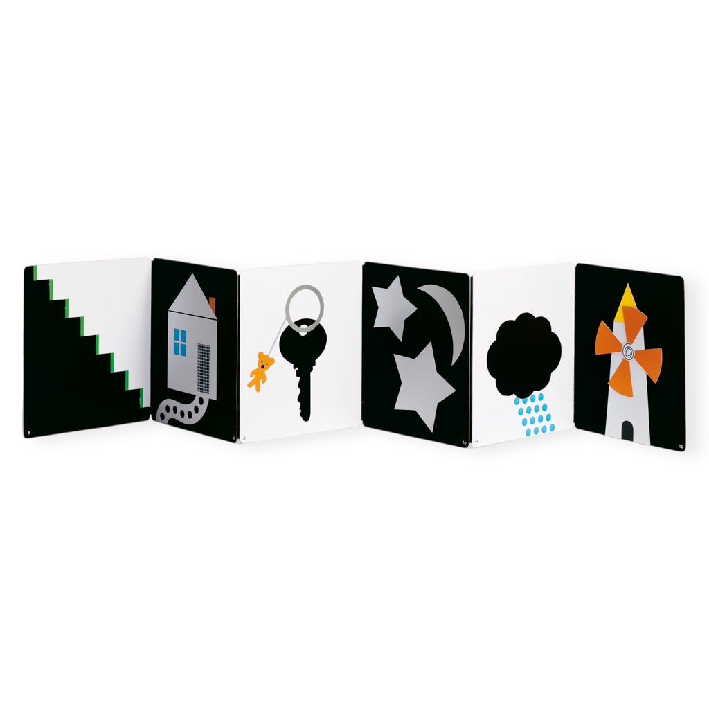 A high-contrast and tactile concertina board book, perfect for babies and tummy time. A baby’s world is a blur when they’re first born and they start to see black and white before they see colour. Books featuring high-contrast images will help develop their eyesight and focus, and keep their attention....