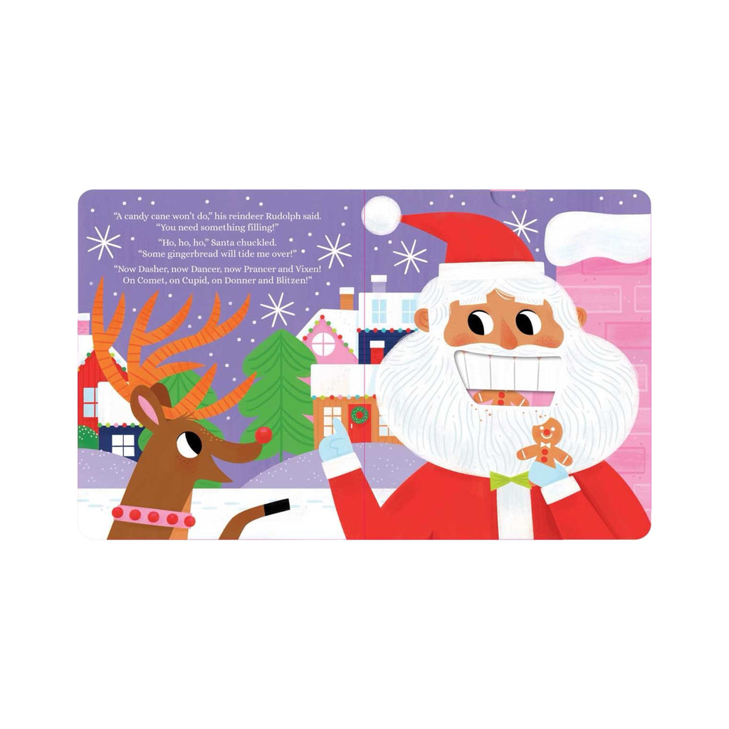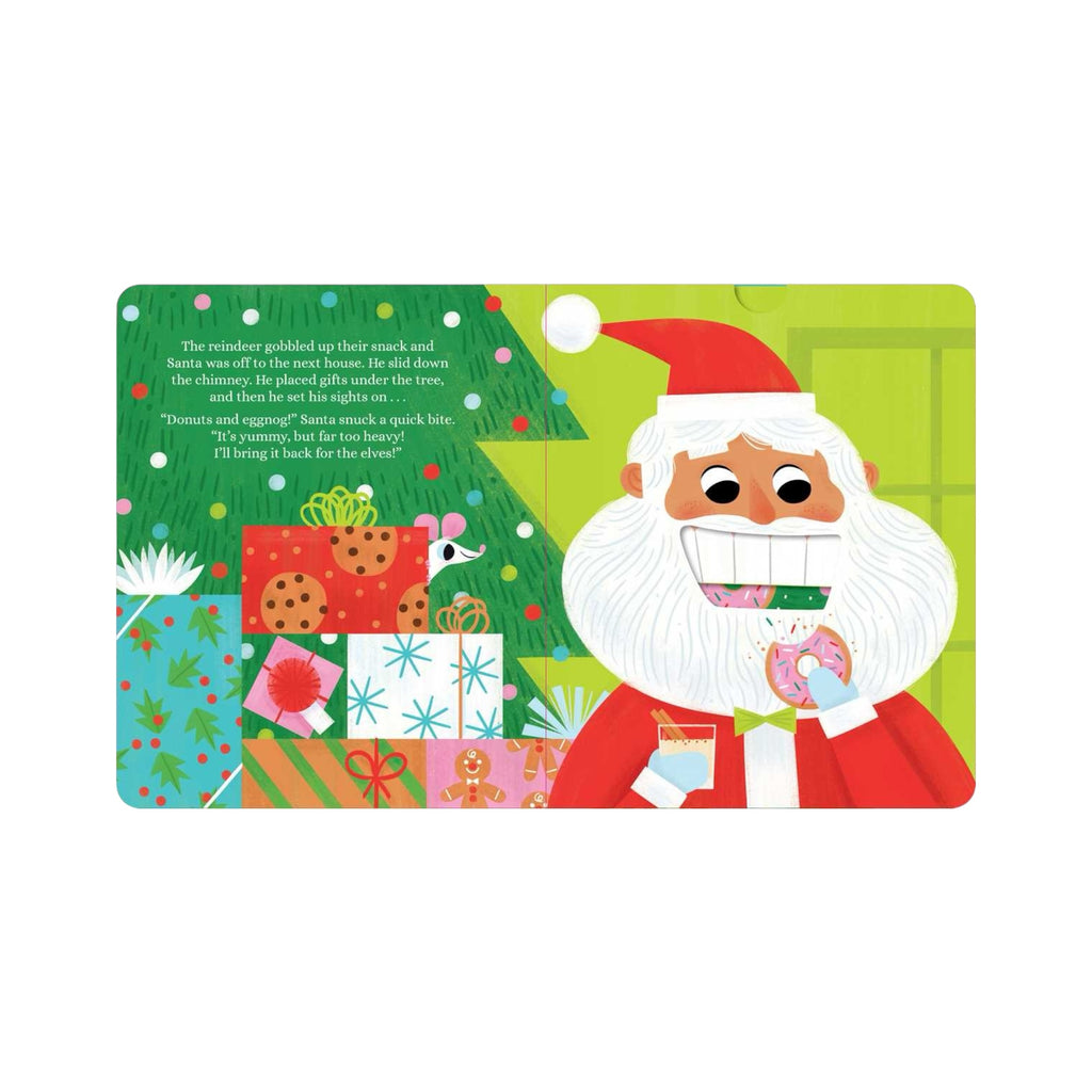 CELEBRATE CHRISTMAS! Kids will love pulling the tabs to make Santa take big bites of classic Christmas snacks in this interactive, yummy, board book. It's Christmas eve, and after a busy night of delivering presents, Santa is hungry! But will he be able to find the perfect snack before flying...