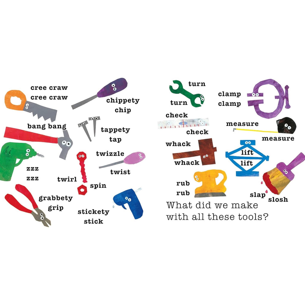 Cree craw with the saw, bang bang with the hammer, and twizzle, twist, twirl, and spin with the screwdriver, bolts, and nuts. What fun! Its tool time for children as they delight in colorful chisels, clamps, drills, pliers, and mallets at work. What could they be making? Kids will love...