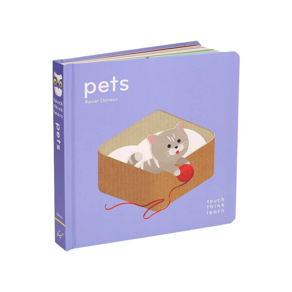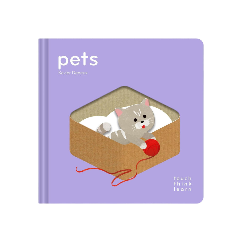 TouchThinkLearn: Pets is a chunky board book that fully involves little ones by engaging them in exploring animals in several ways: seeing the image, tracing its shape, saying its name. These modes of perception combine to stimulate understanding of essential concepts.