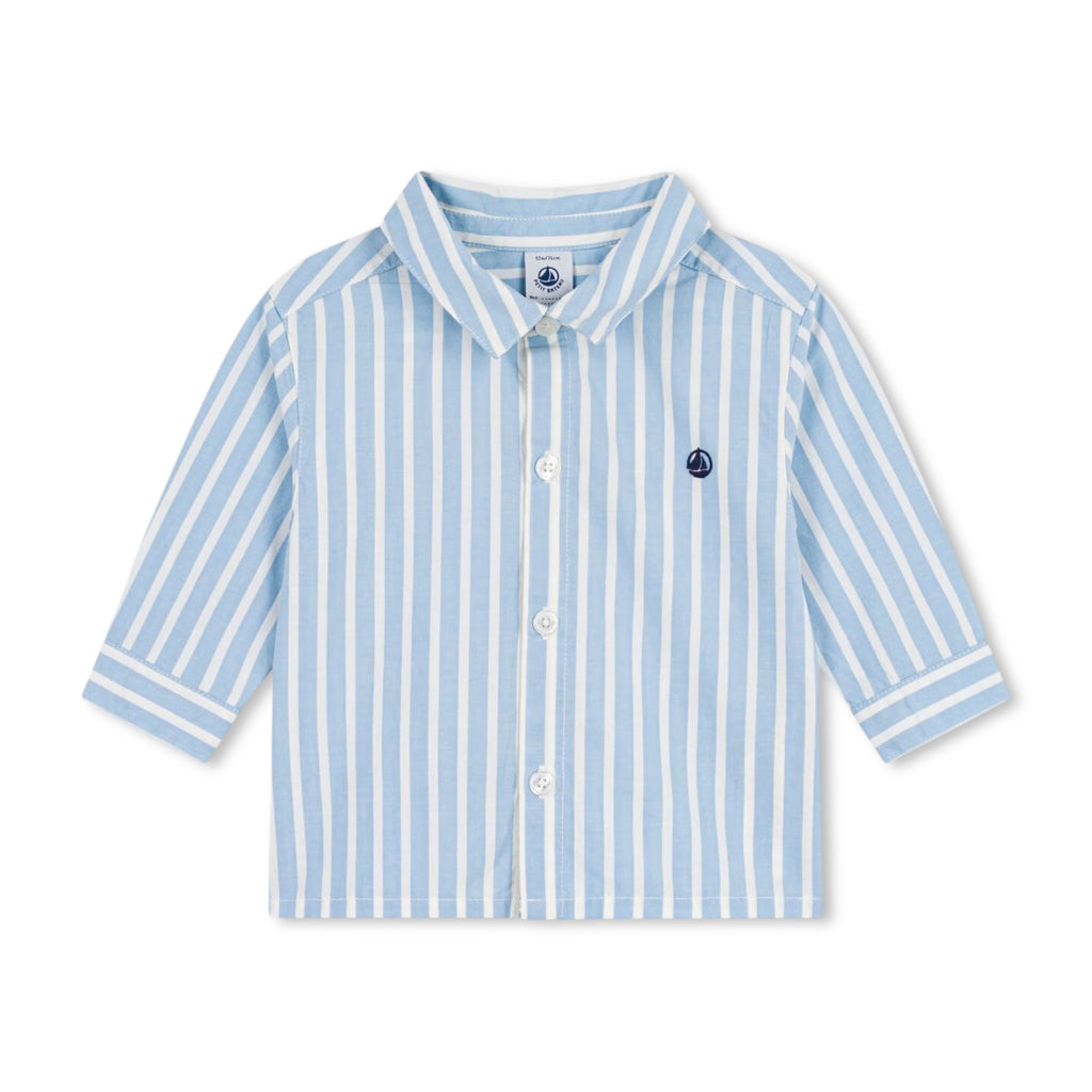 Petit Bateau Baby Woven l/s Shirt & Shorts Set ~ Blue/White