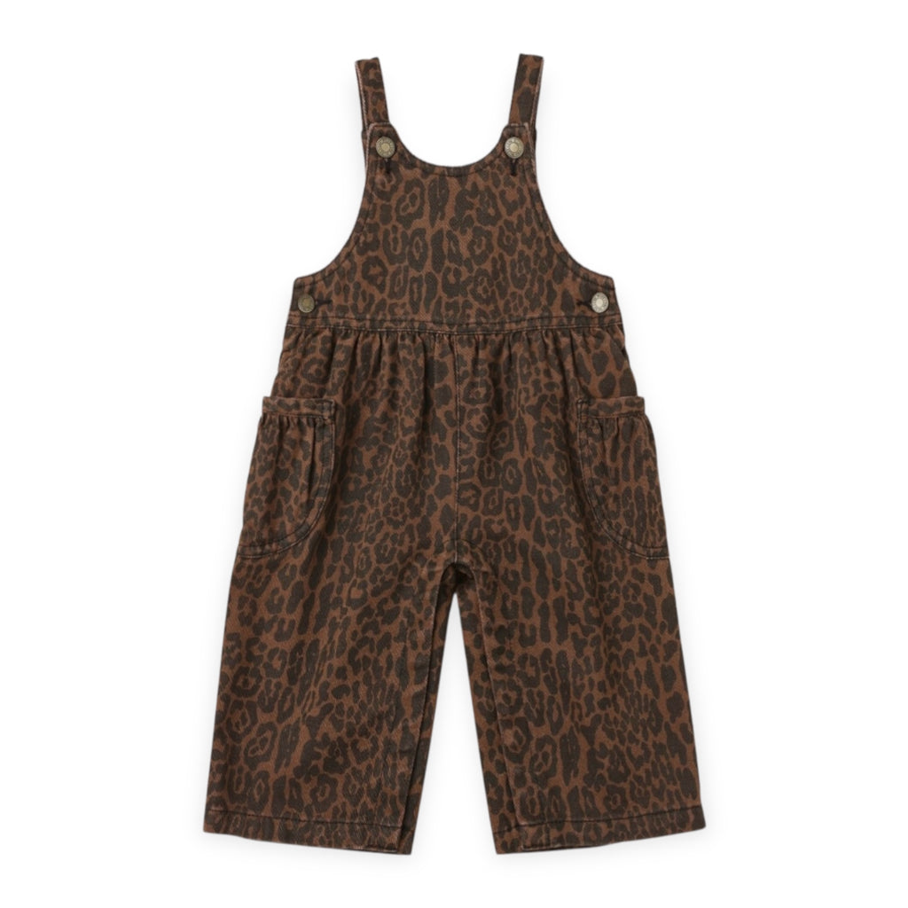 Rylee + Cru Baby Ruffle Onesie & Wide Leg Overalls Set ~ Black/Leopard