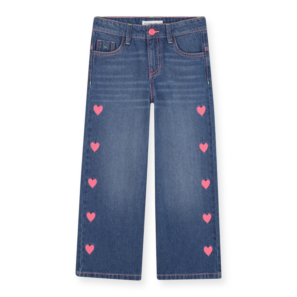 Billieblush Girls Baggy Denim Pants w/ Hearts ~ Medium Stone Wash