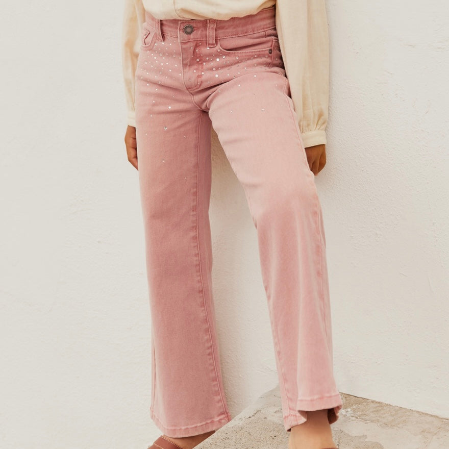 Molo Asta Flared Denim Pants 7-12 ~ Blush Rhinestone