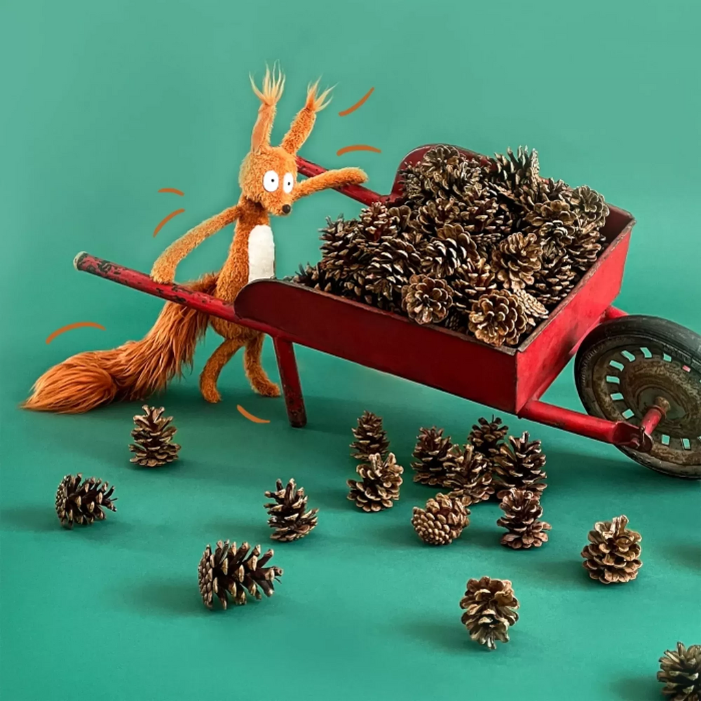 The beautiful red squirrel, a L’école des loisirs hero, is brought to life for little ones to join in the fun! Eccentric as can be, he has eyes like saucers and an upturned tail. His guilty pleasure? pine cones!