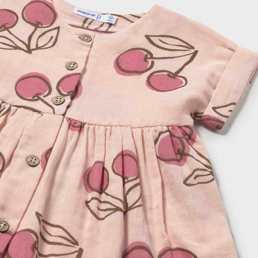 Mayoral Girls Cherries Print Woven Dress ~ Peony