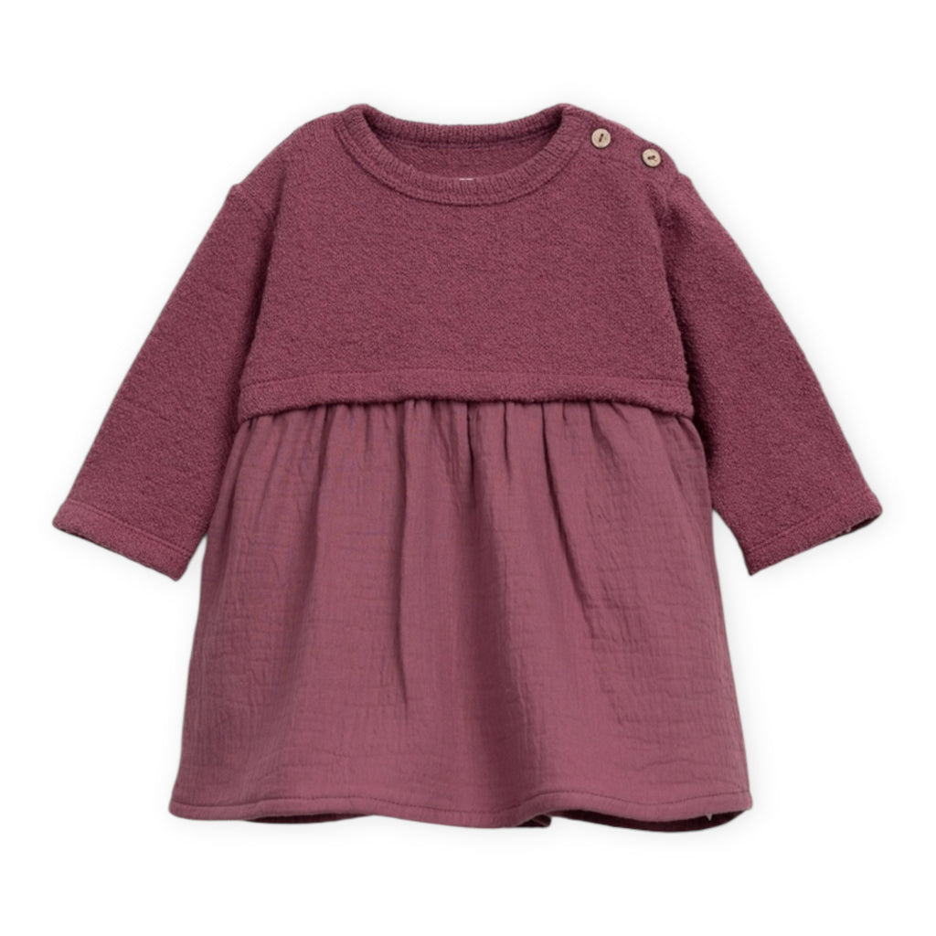 Play Up Baby Bi-material l/s Dress ~ Dark Rose