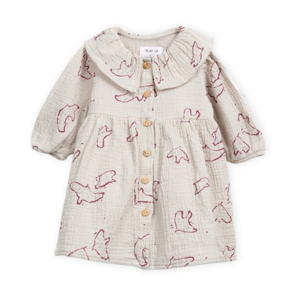Play Up Baby Bird Print Woven Dress ~ Natural/Dark Rose