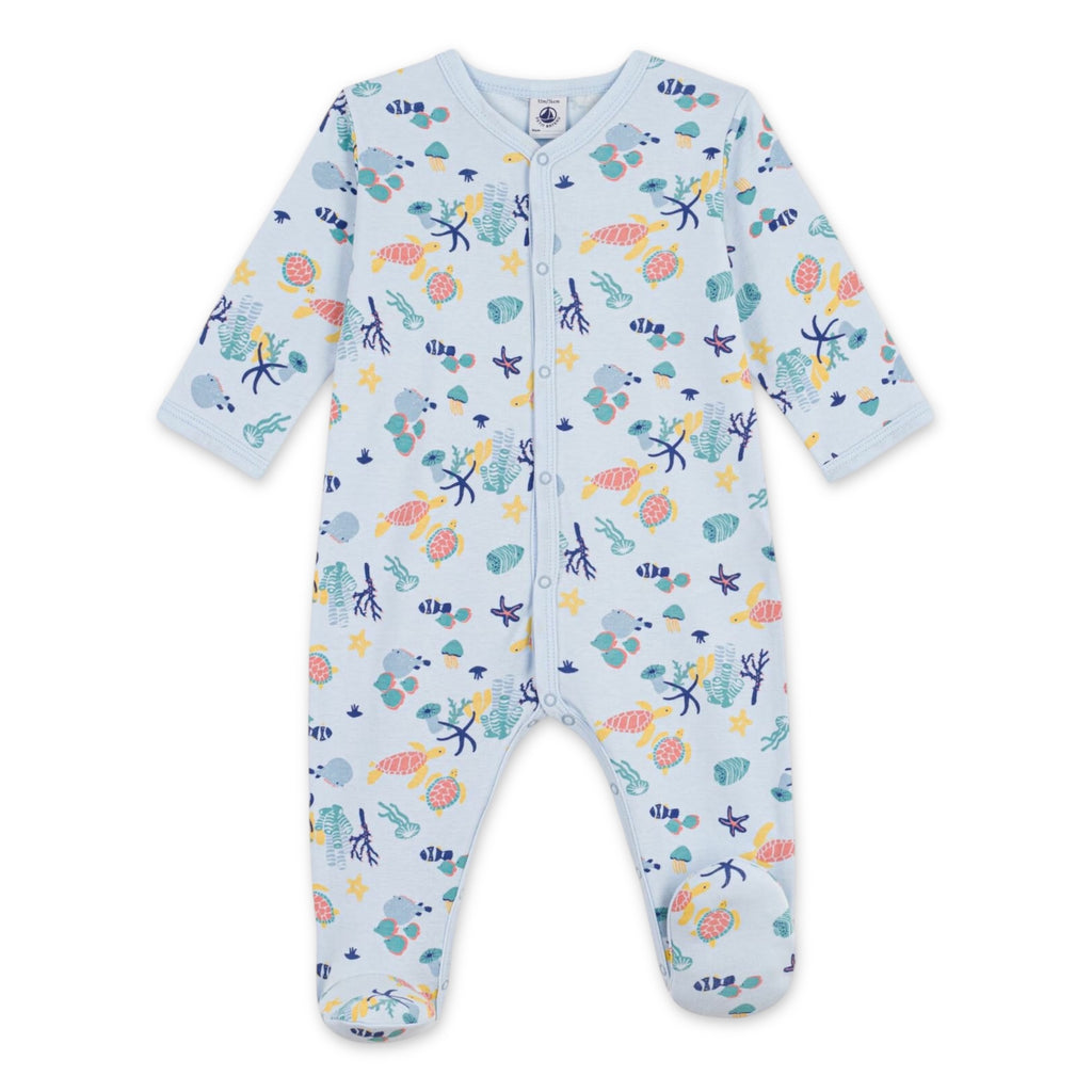 Petit Bateau Front Snap Sea World Print Footie ~ Blue Multi