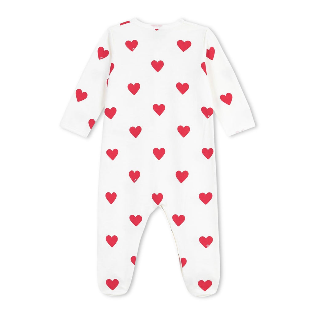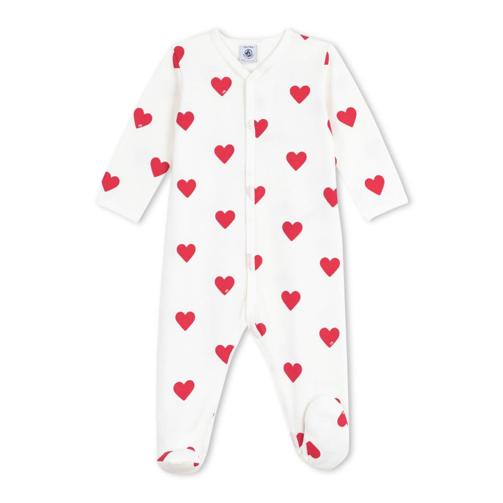 Petit Bateau Front Snap Heart Print Footie ~ White/Red