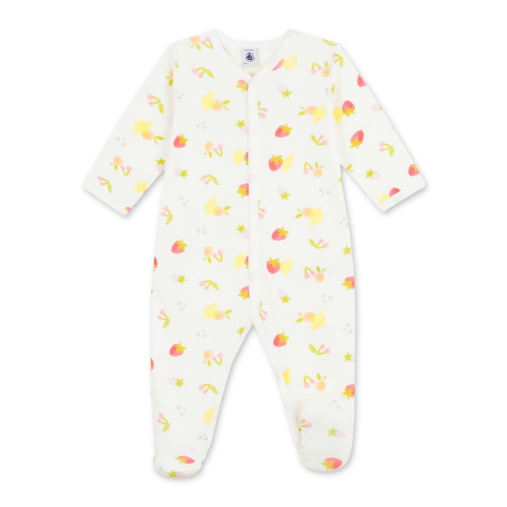 Petit Bateau Front Snap Tutti Frutti Print Footie ~ White Multi