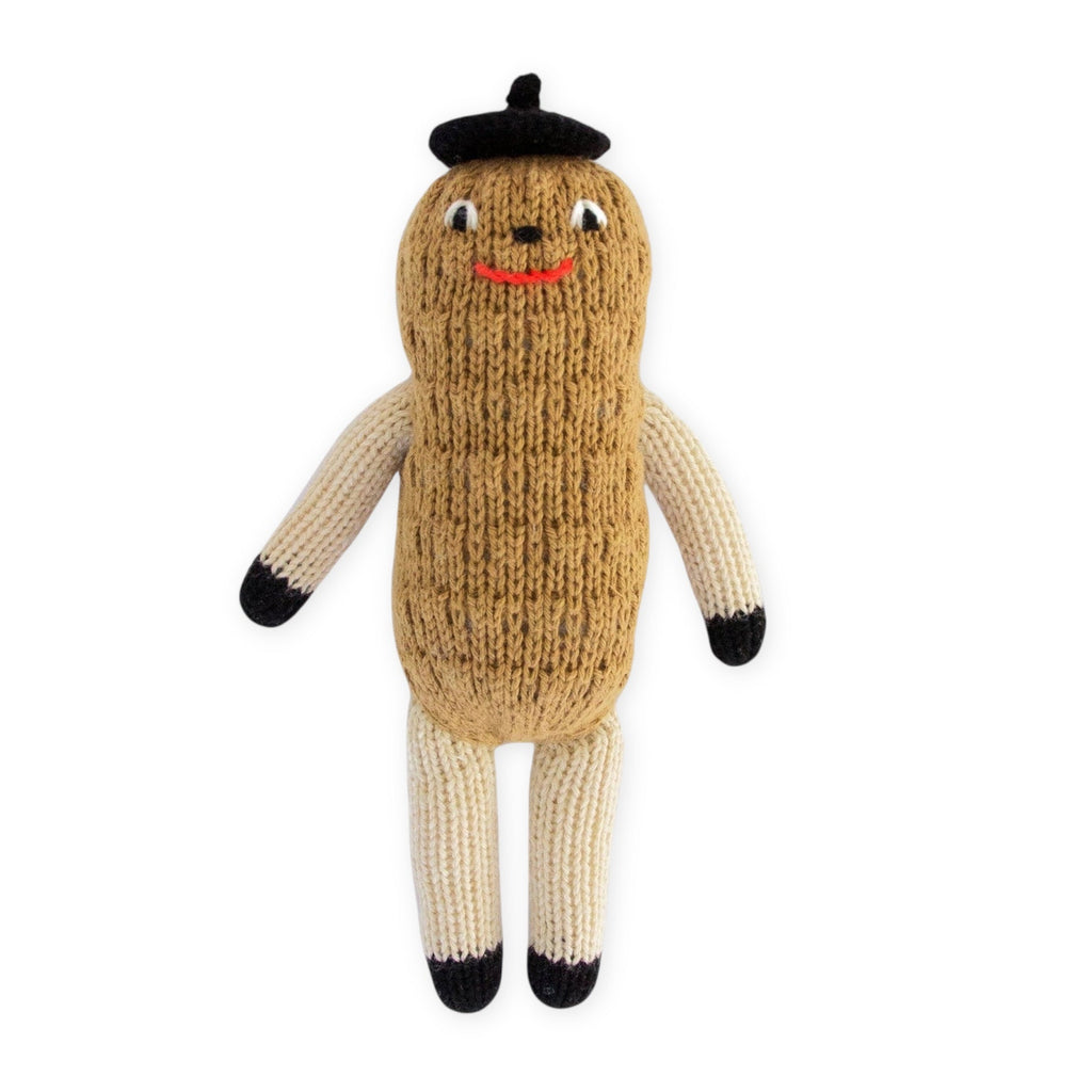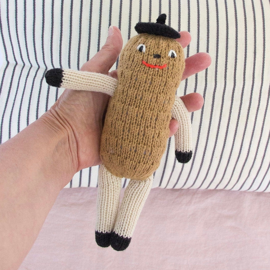 Peanut Rattle is 7" | 100% cotton knit | Polyfil-Cotton Stuffing | Designed in the US | Handmade in Peru