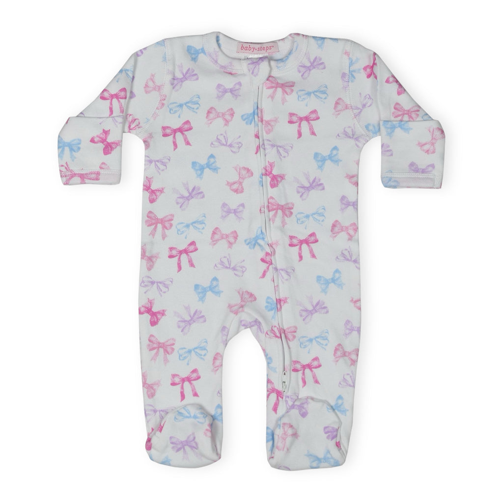 Baby Steps Zip Footie ~ Ditsy Rose/White
