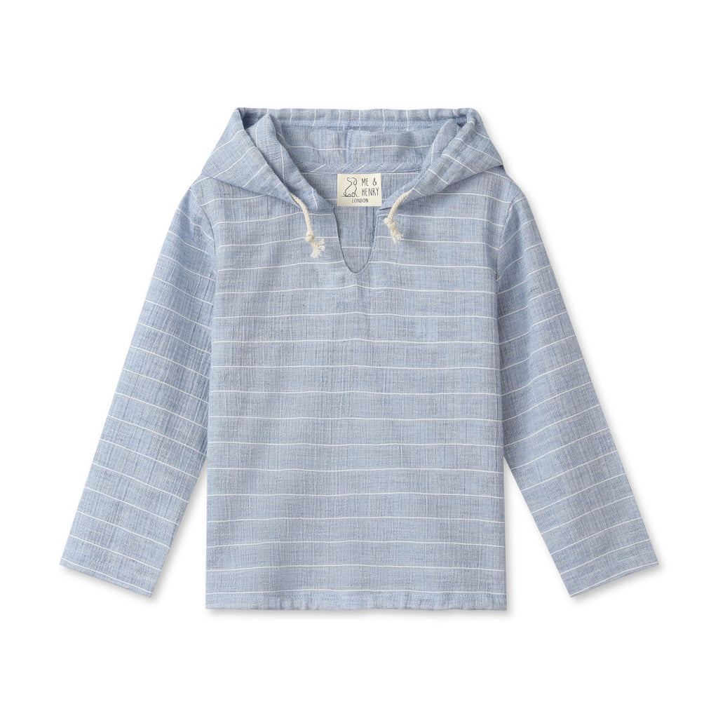 Me & Henry St. Ives Gauze Hooded Top ~ Chambray Textured Stripe