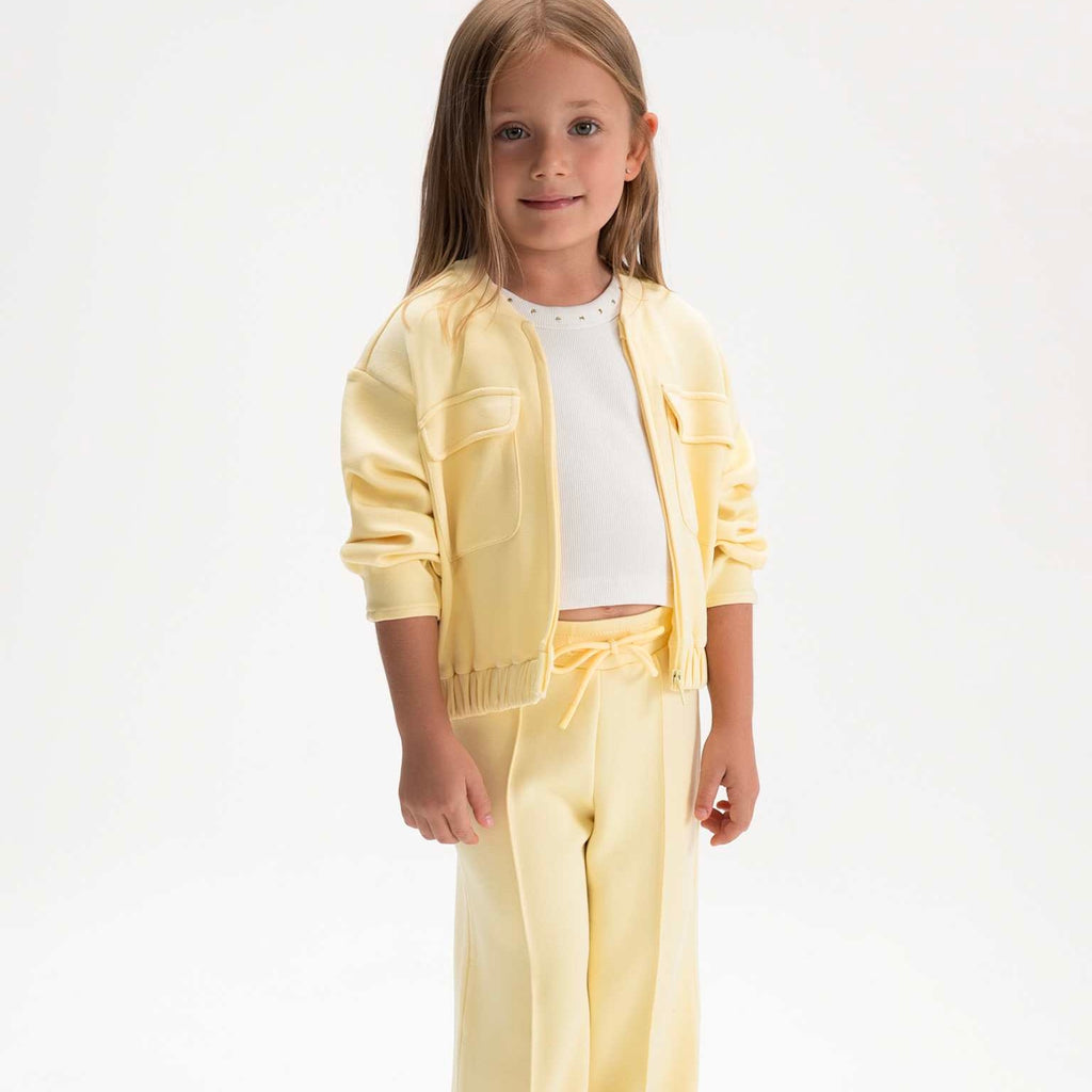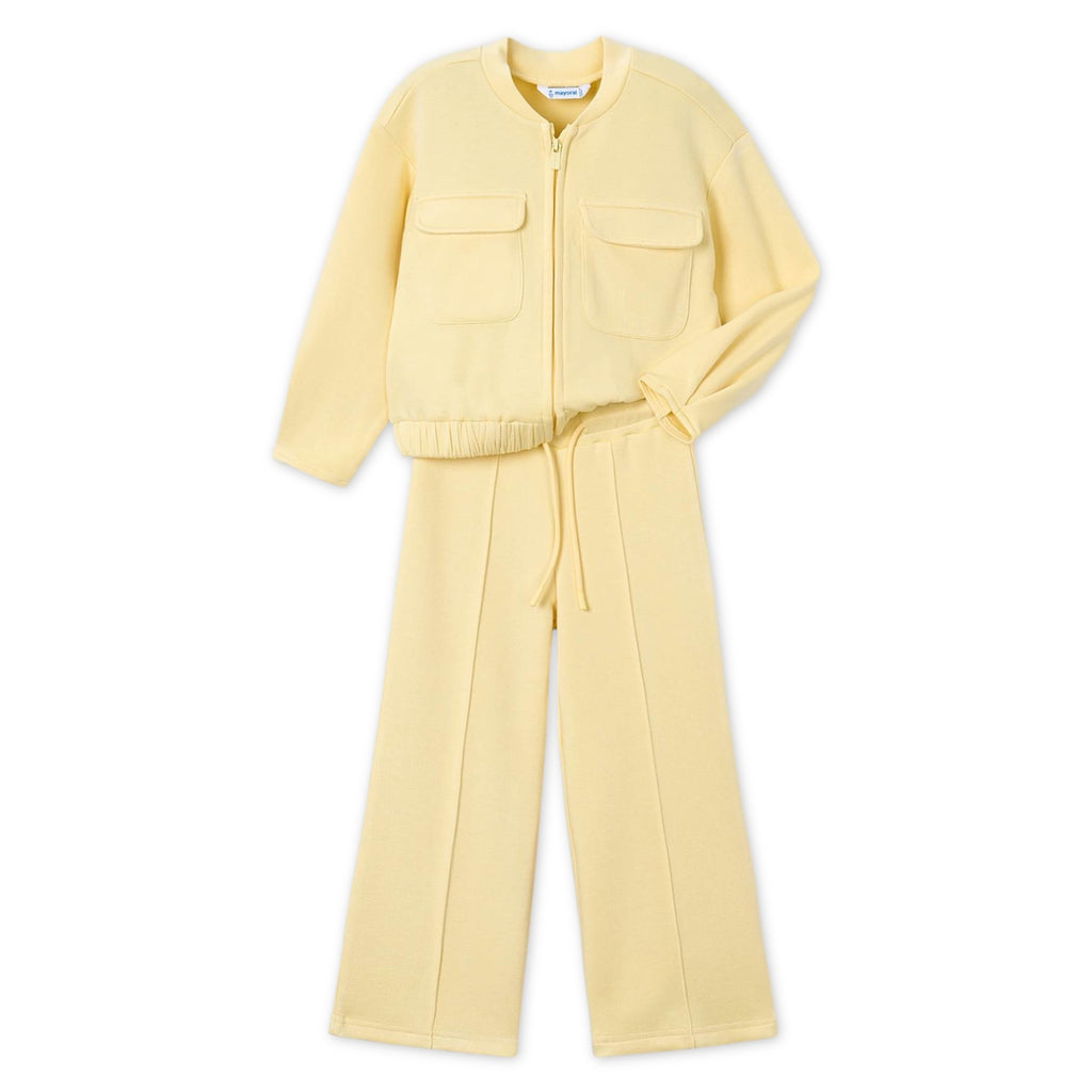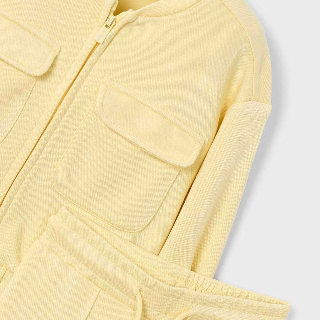 Mayoral Girls Pique Zip Sweatshirt & Pants Set ~ Vanilla