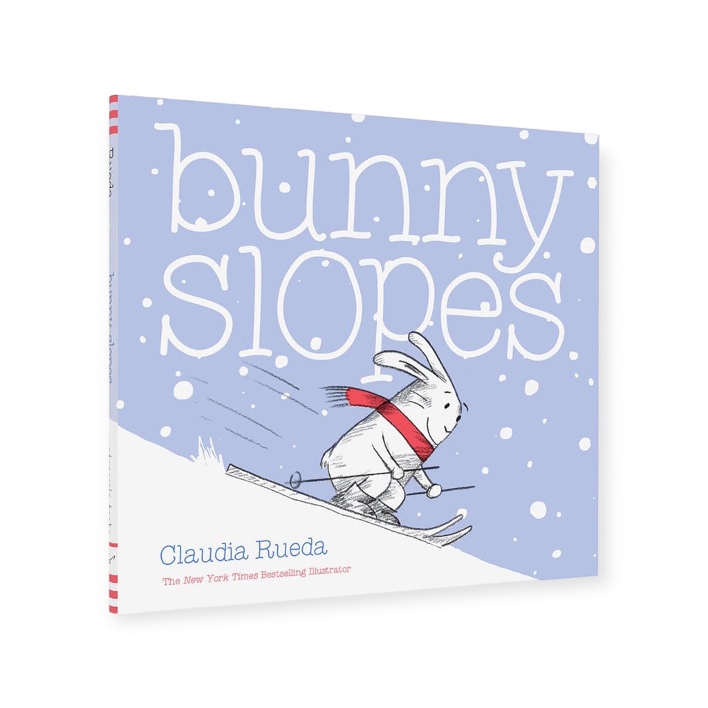 Time to tackle the bunny slope! Shake to help Bunny make it snow, tilt to help Bunny ski down the slope, and turn to help Bunny escape a cliff in his path. Is there any obstacle Bunny can't conquer? Bringing grins and guffaws with each turn of the page, readers will find Claudia Rueda's innovative bookmaking as entertaining as the twists and turns of a ski slope— and as satisfying as a cozy cup of hot cocoa.