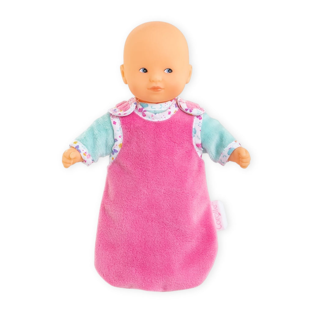 Corolle's Mini Calin Good Night - Butterflies set includes an 8-inch tall, soft-bodied Mini Calin baby doll plus cozy pajamas and a sleeper bag to get her ready for a trip to the land of Nod.