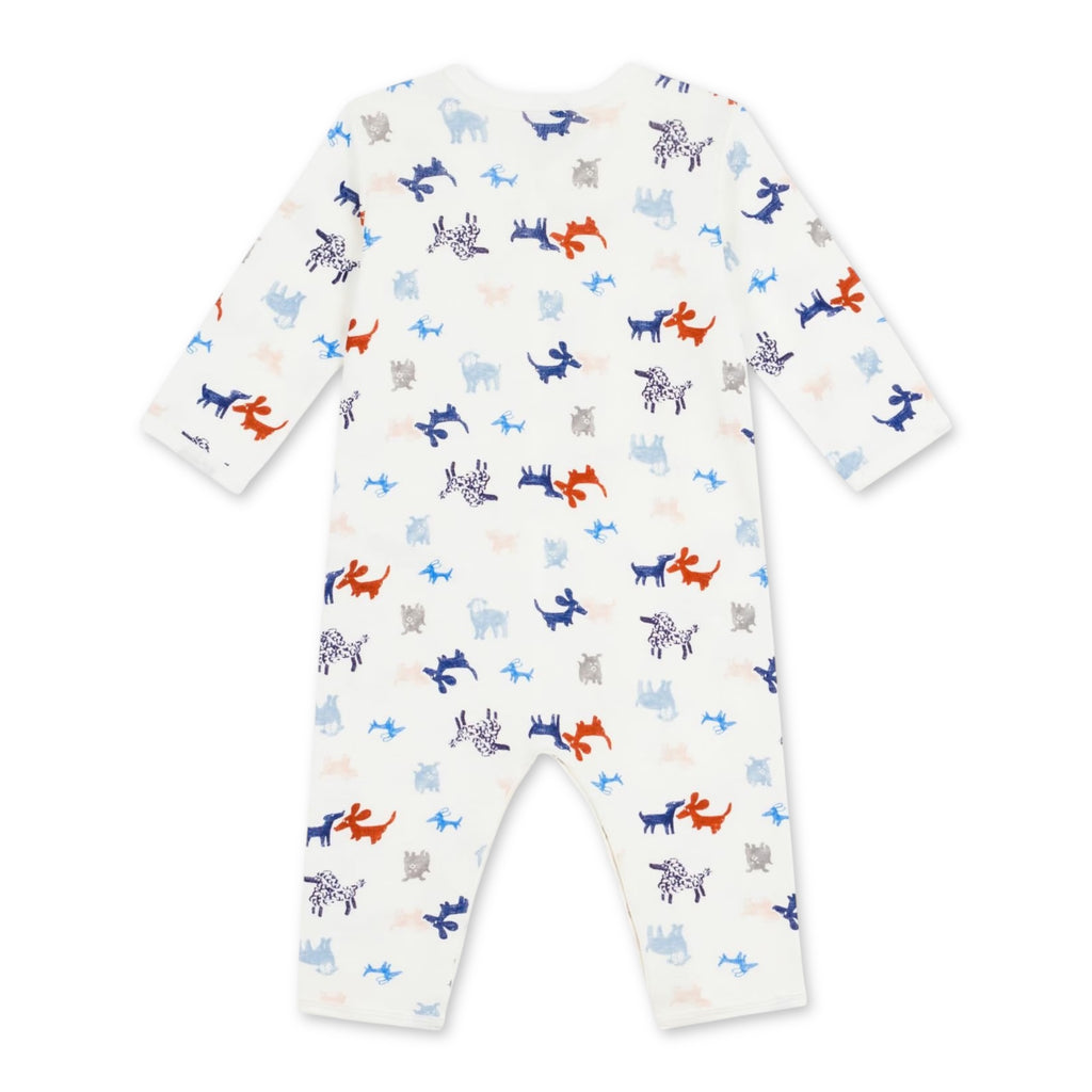 Petit Bateau l/s Dogs Print Romper ~ White Multi