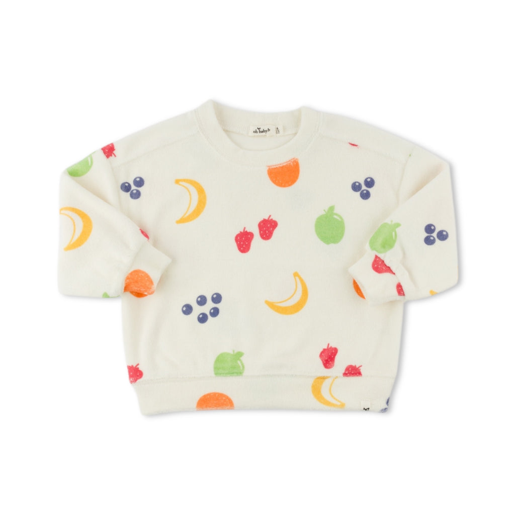 Oh Baby! Snack Time Print Terry Charlie Sweatshirt & Shorts Set ~ Oyster