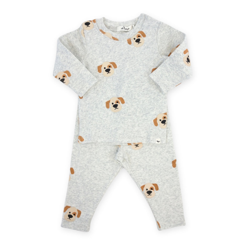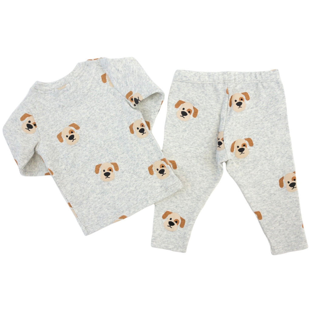 Oh Baby! Puppy Faces Print 2pc Set ~ Heather Gray