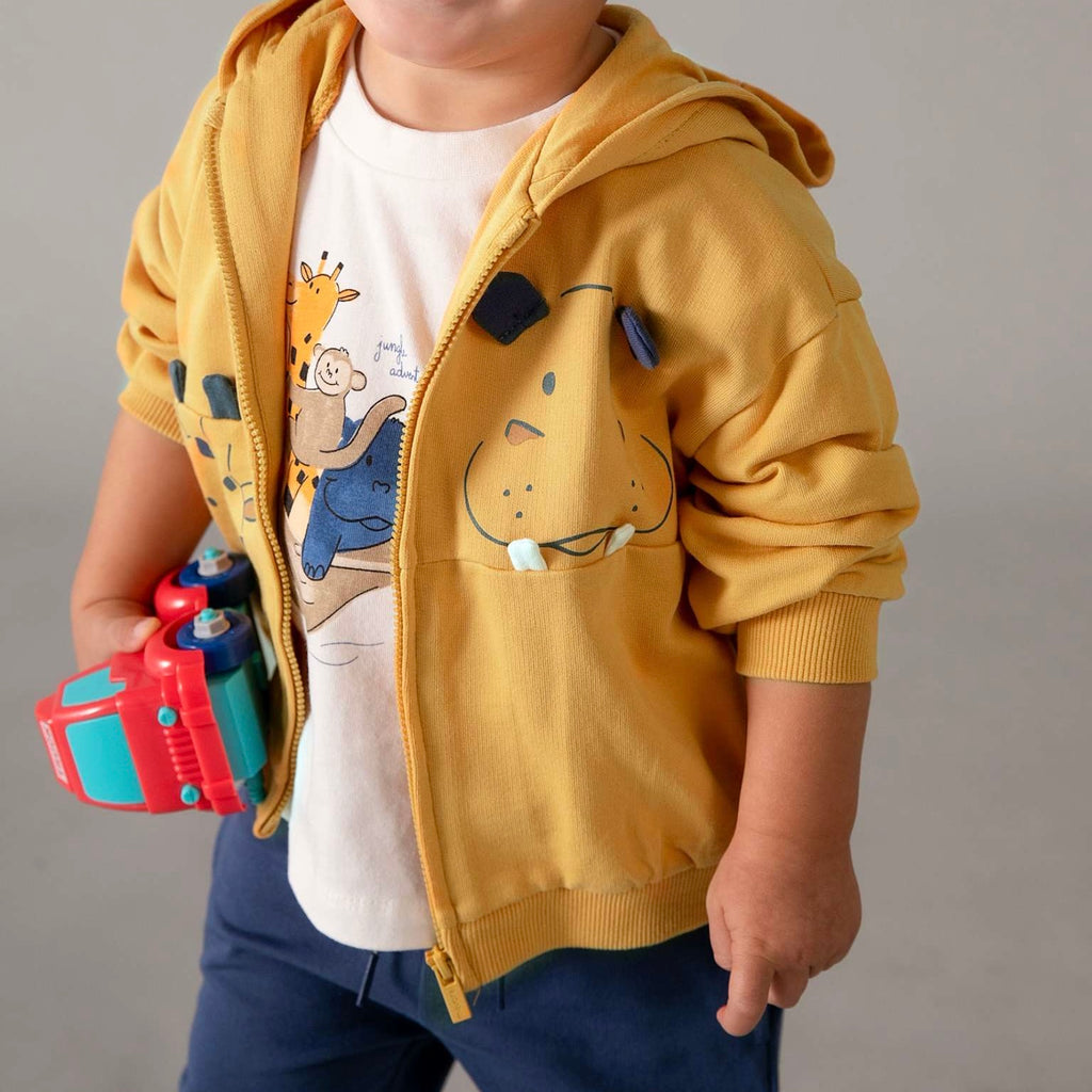 Mayoral Baby Boy Zip Hoodie, Tee & Joggers 3pc Set ~ Golden/Navy