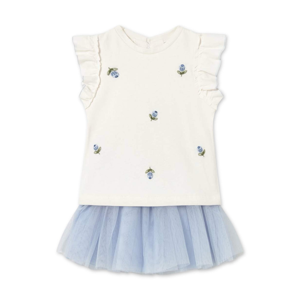 Mayoral Baby Girl Embroidered Top & Tulle Skirt Set ~ Sky