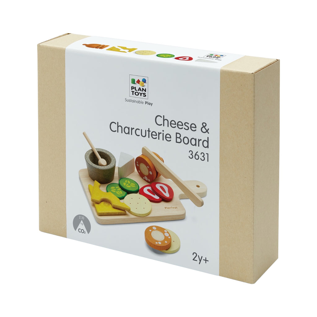 Everyone loves a charcuterie board. With this set, children can prepare a European-style appetizer that’s guaranteed to impress their guests. This set includes 2 pickled cucumbers, 2 strawberries, 2 crackers, 1 block of brie cheese, 2 slices of gouda cheese, 1 sliceable roll of salami, 1 knife, 1 sauce cup, 1 spoon, and 1 cutting board. Expand upon the meal with other PlanToys pretend foods and kitchenware.