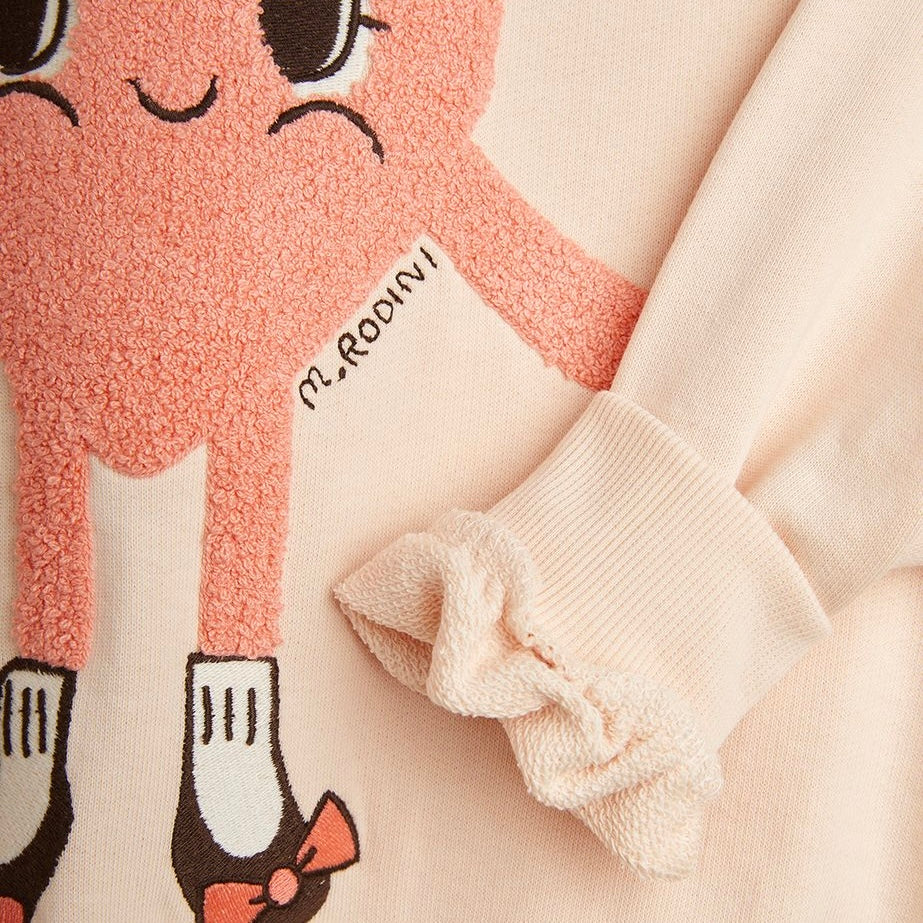 Mini Rodini Baby Chenille Heart w/ Shoes Sweatshirt ~ Light Peach