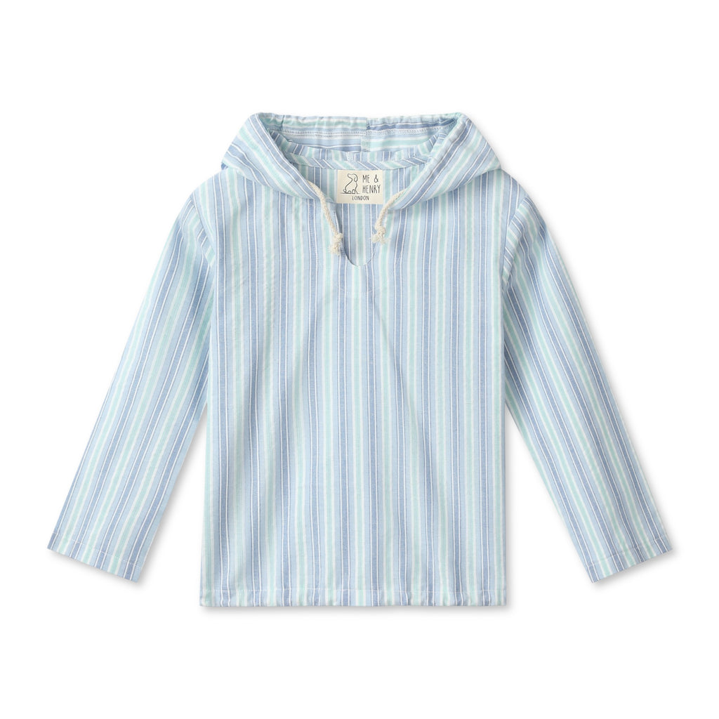 Me & Henry St. Ives Gauze Hooded Top ~ Chambray/Blue Stripe
