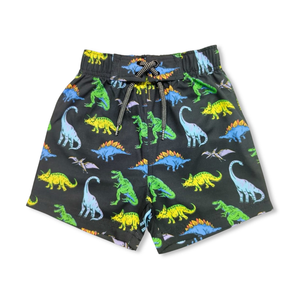 Mish Boys Neon Dino Swim Trunks ~ Black Multi