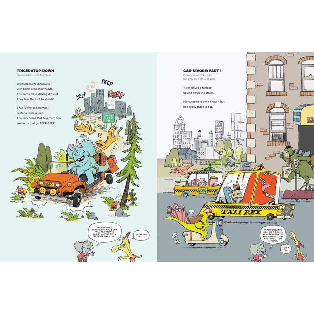 Buckle up for a raptor race, train-faring Titanosaurs and (gulp) a taxi-driving T. rex in this hilariously whirlwind picture book poetry collection for fans of Richard Scarry and Goodnight, Goodnight, Construction Site!