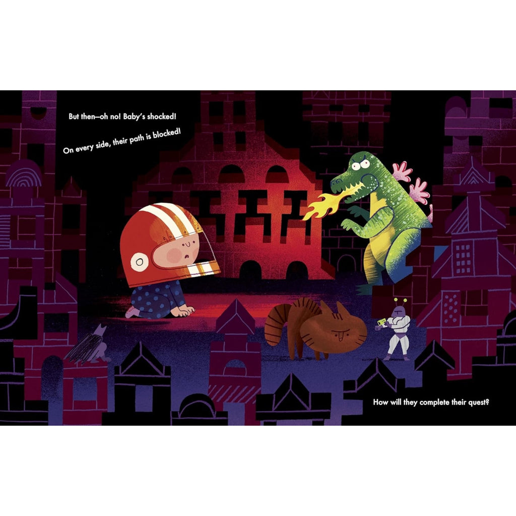 Baby is on a quest to get to the other side of the room (aka very far away) all on their own. While the floor may not be so interesting to parents and big siblings, for Baby, it is an entire world full of fascinating things to explore. Seen from their perspective, a fluffy rug becomes tickly grass, a sibling doing yoga turns into a bridge, and a table and chairs transform into a dense forest.