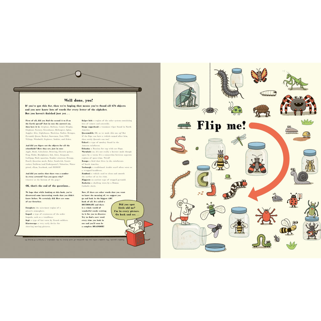 In Alphabet of Alphabets, you'll take a ride through twenty fully-illustrated alphabets, from an A to Z of Birds to an A to Z of Zoo. Then, flip the book over for Number of Numbers, where you can count the animals going into Noah’s Ark two-by-two, spot thirteen scary skeletons at the haunted house on Halloween, visit Farm Fifteen, and more. Dip in and out of the pages or do each one in order for a unique reading experience.