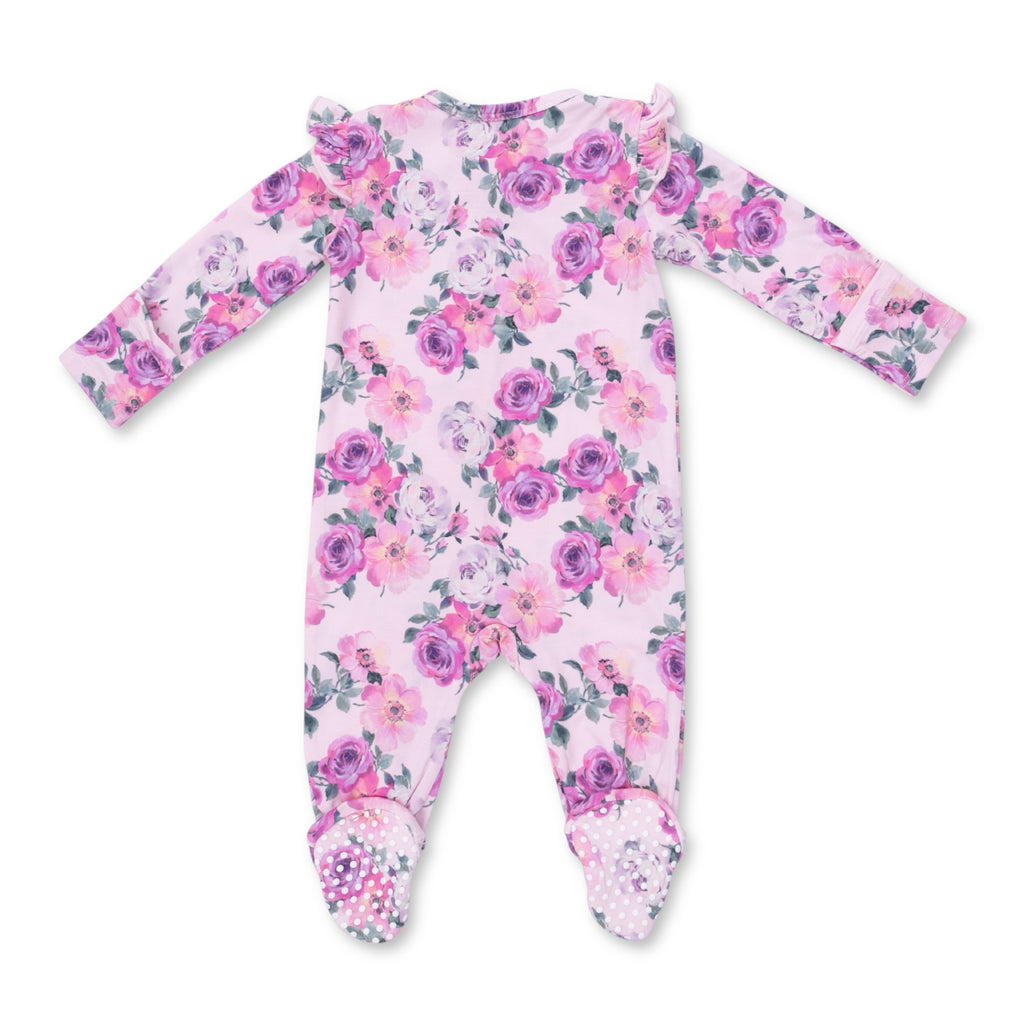 Angel Dear 2 Way Zipper Frill Sleeve Footie ~ Rose Abundance