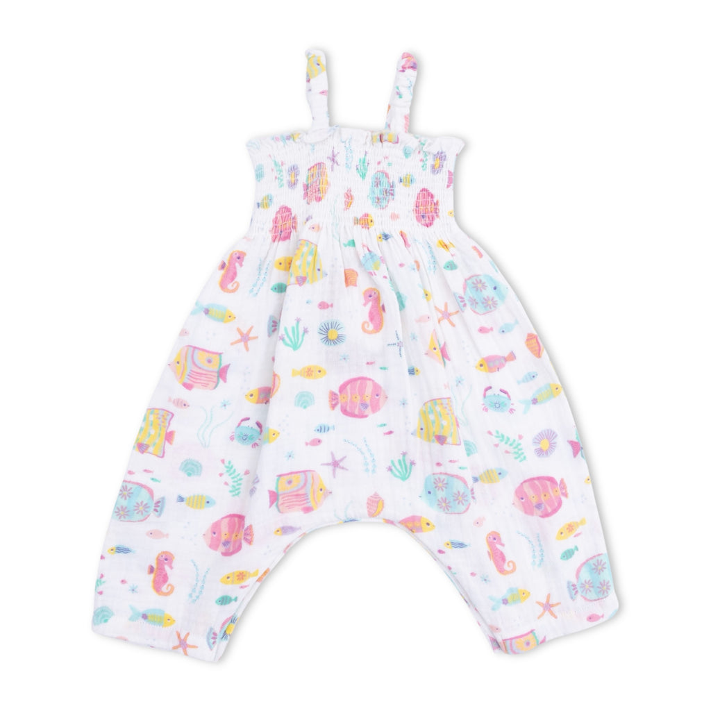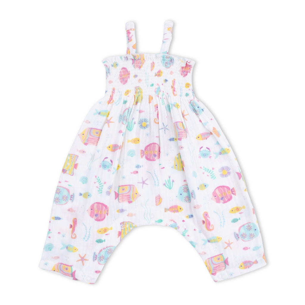 Angel Dear Smocked Muslin Romper ~ Sunny Coral Reef Fish