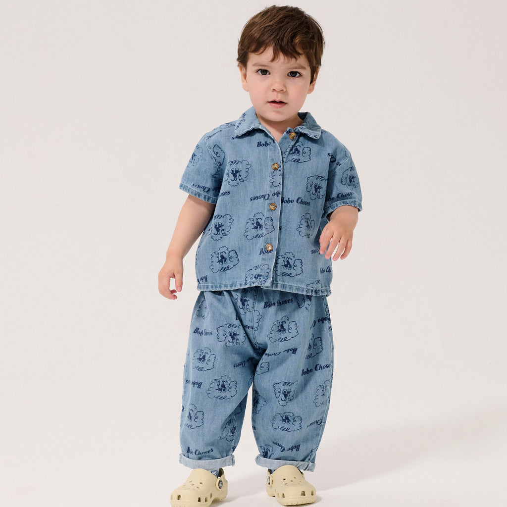 Bobo Choses Baby Pickles The Dog Denim Shirt & Pants Set ~ Prussian Blue
