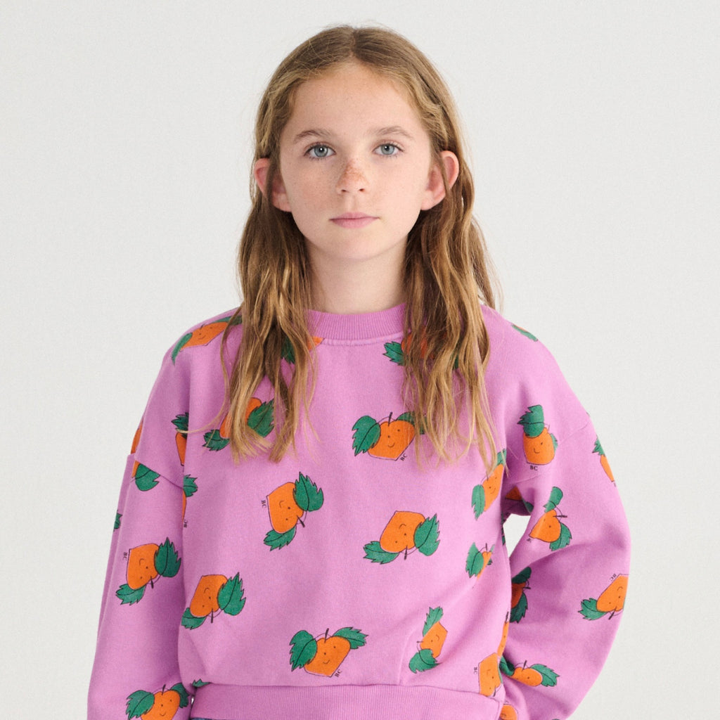 Bobo Choses Girls Tangerine Print Cropped Sweatshirt ~ Purple