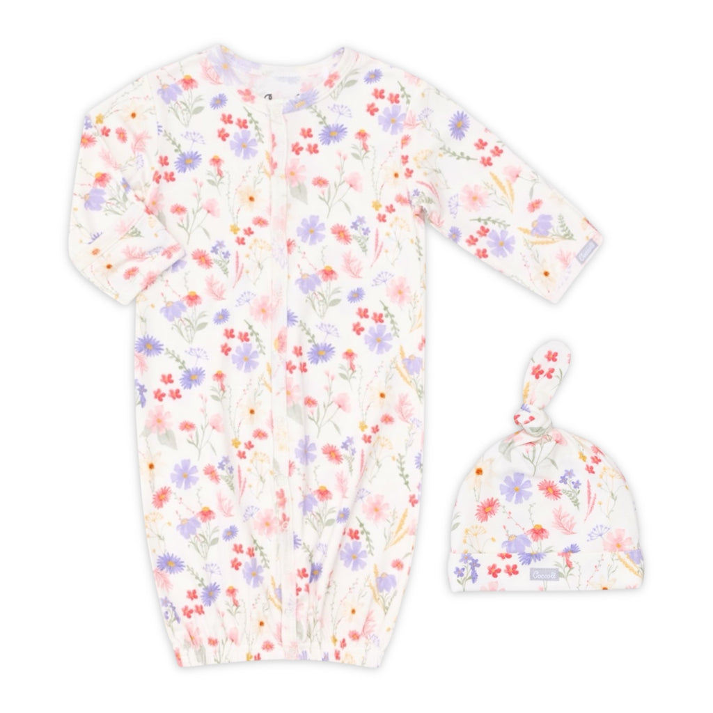 Coccoli Modal Convertible Gown & Hat Set ~ Flowers on Cream