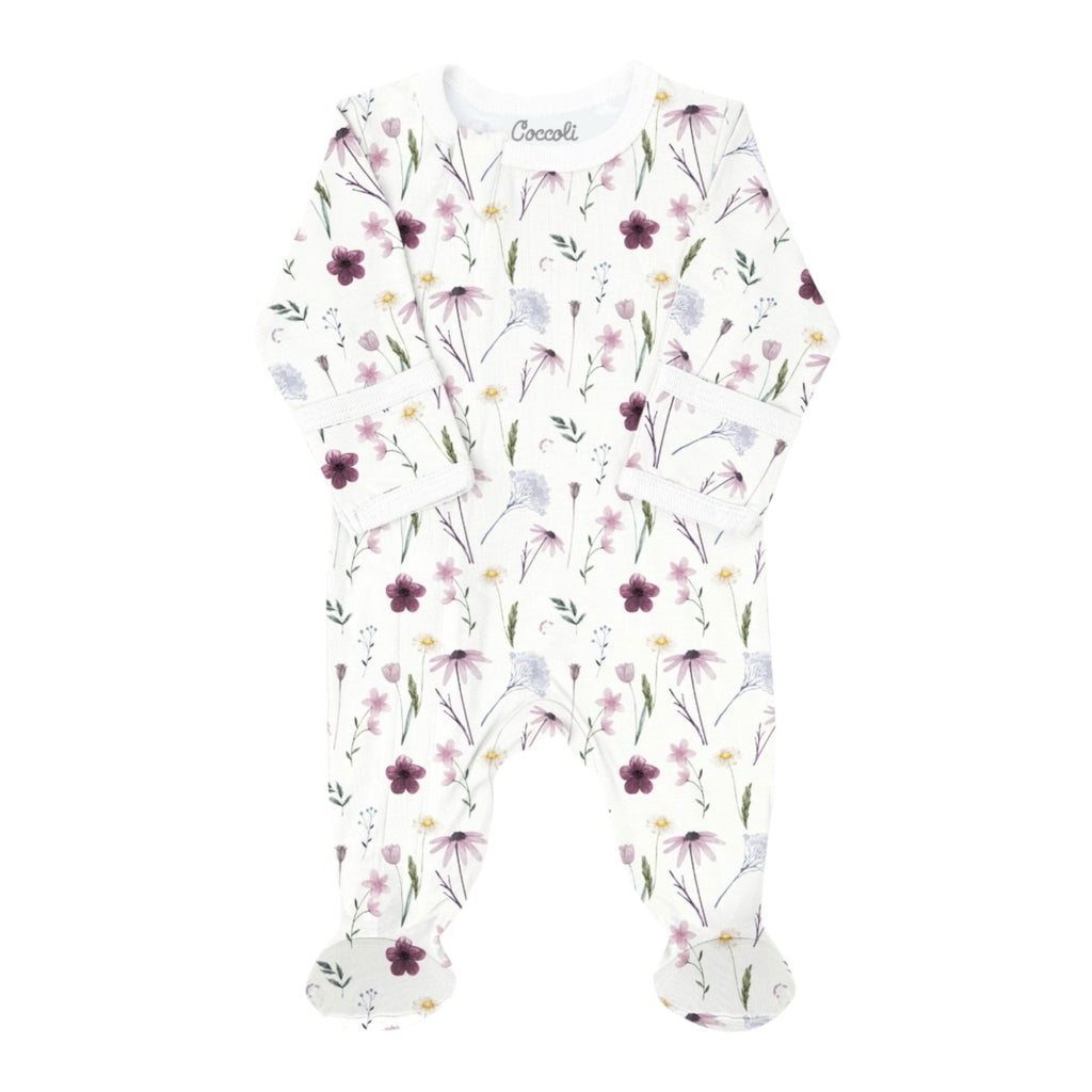 Coccoli Modal Zipper Footie ~ Floral on Cream