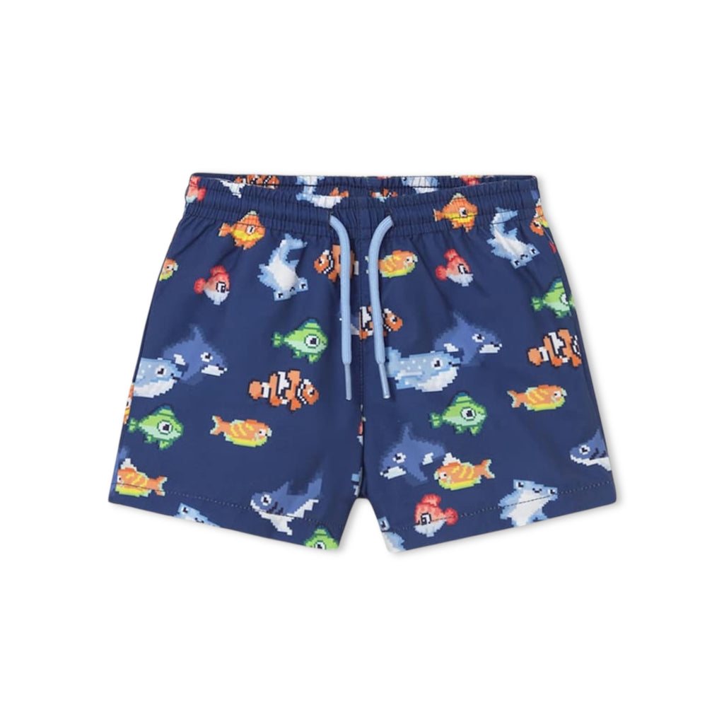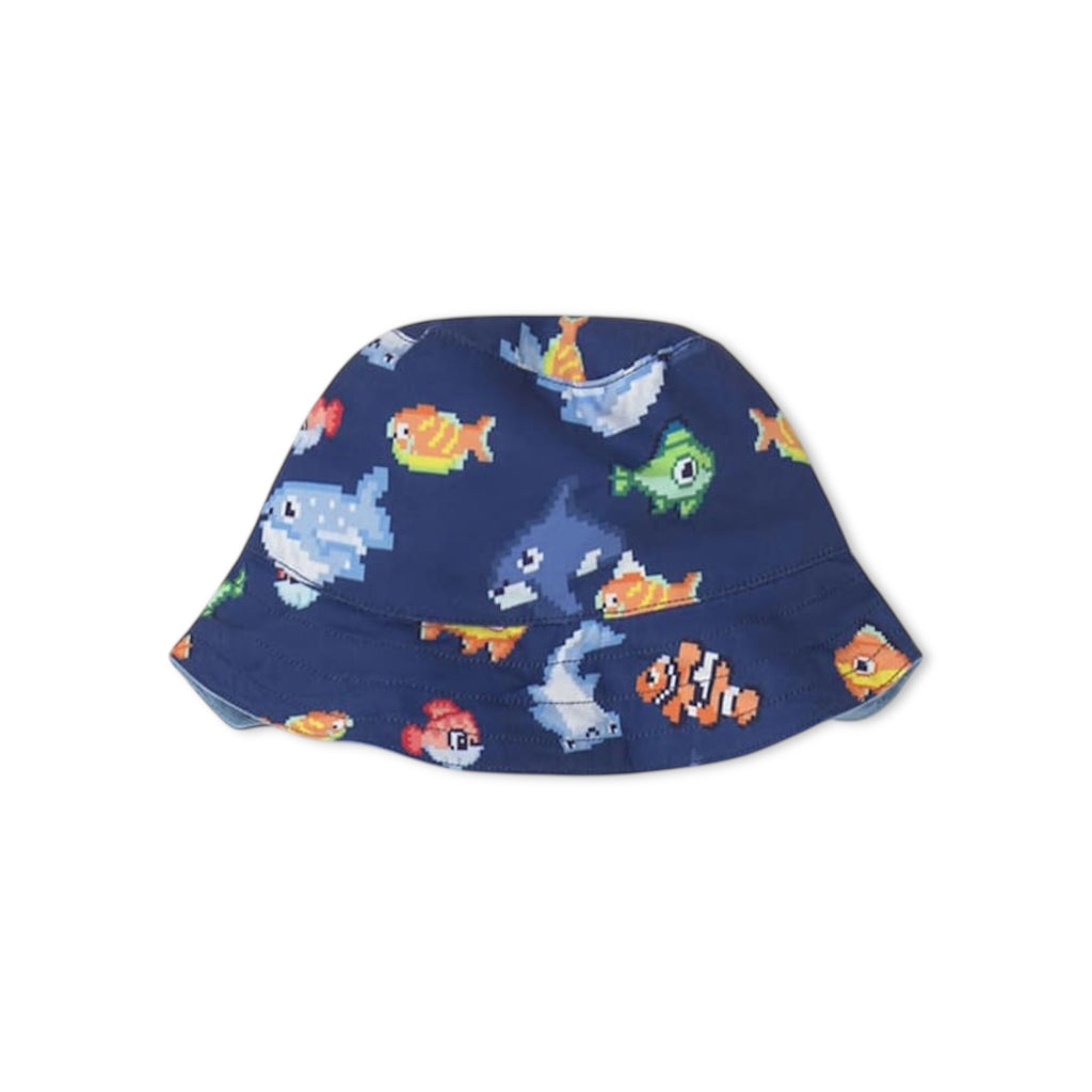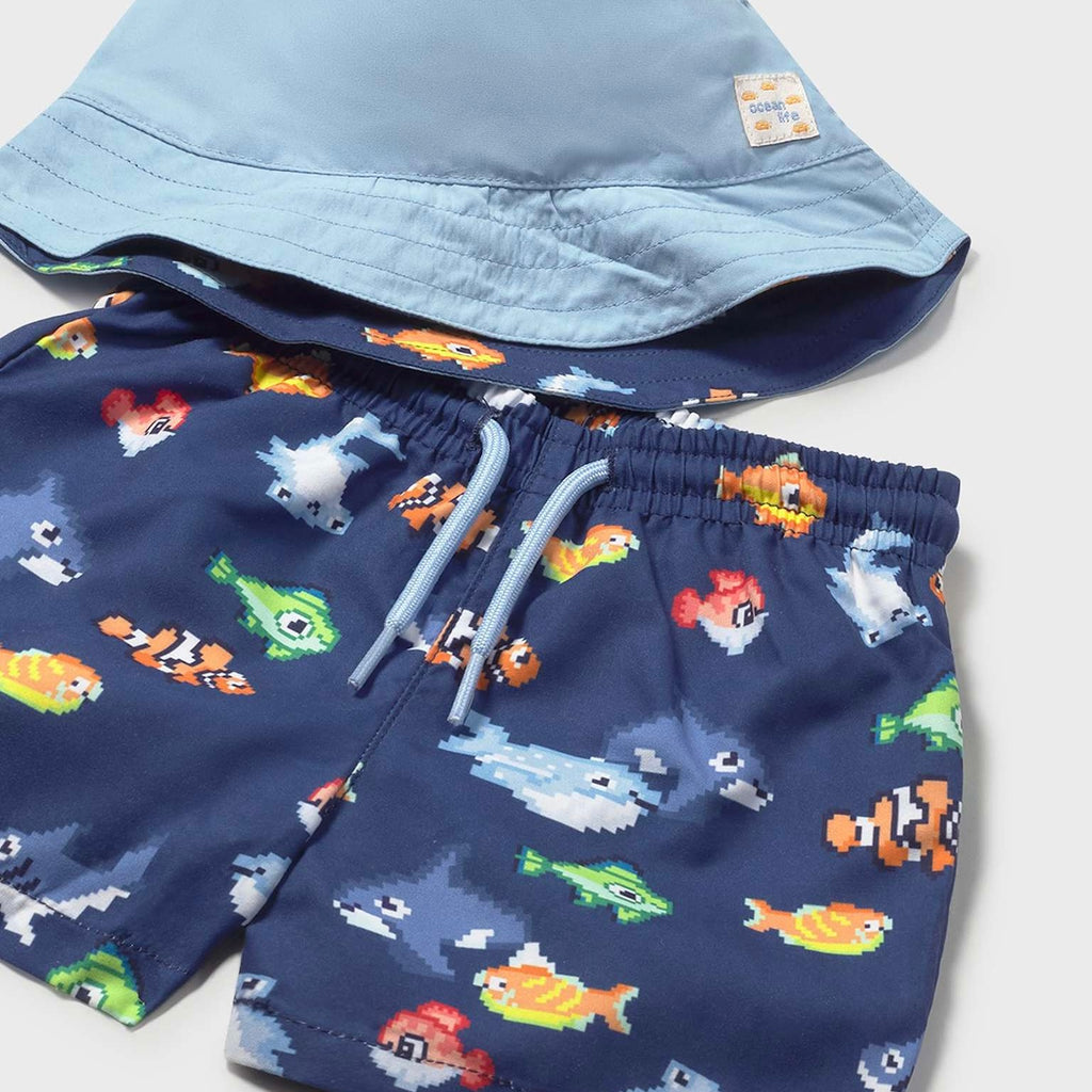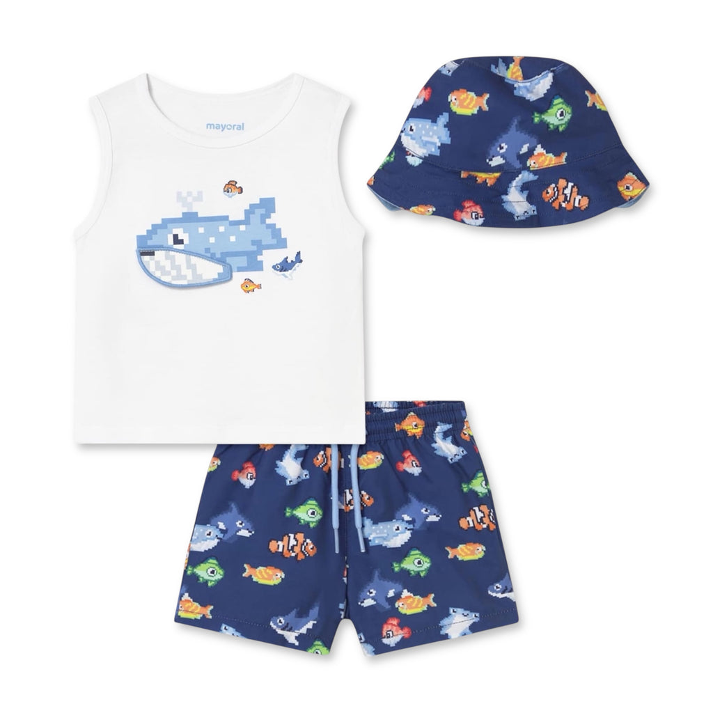 Mayoral Baby Boy Fish Tank Top & Swim Trunks w/ Bucket Hat Set ~ Natural/Night