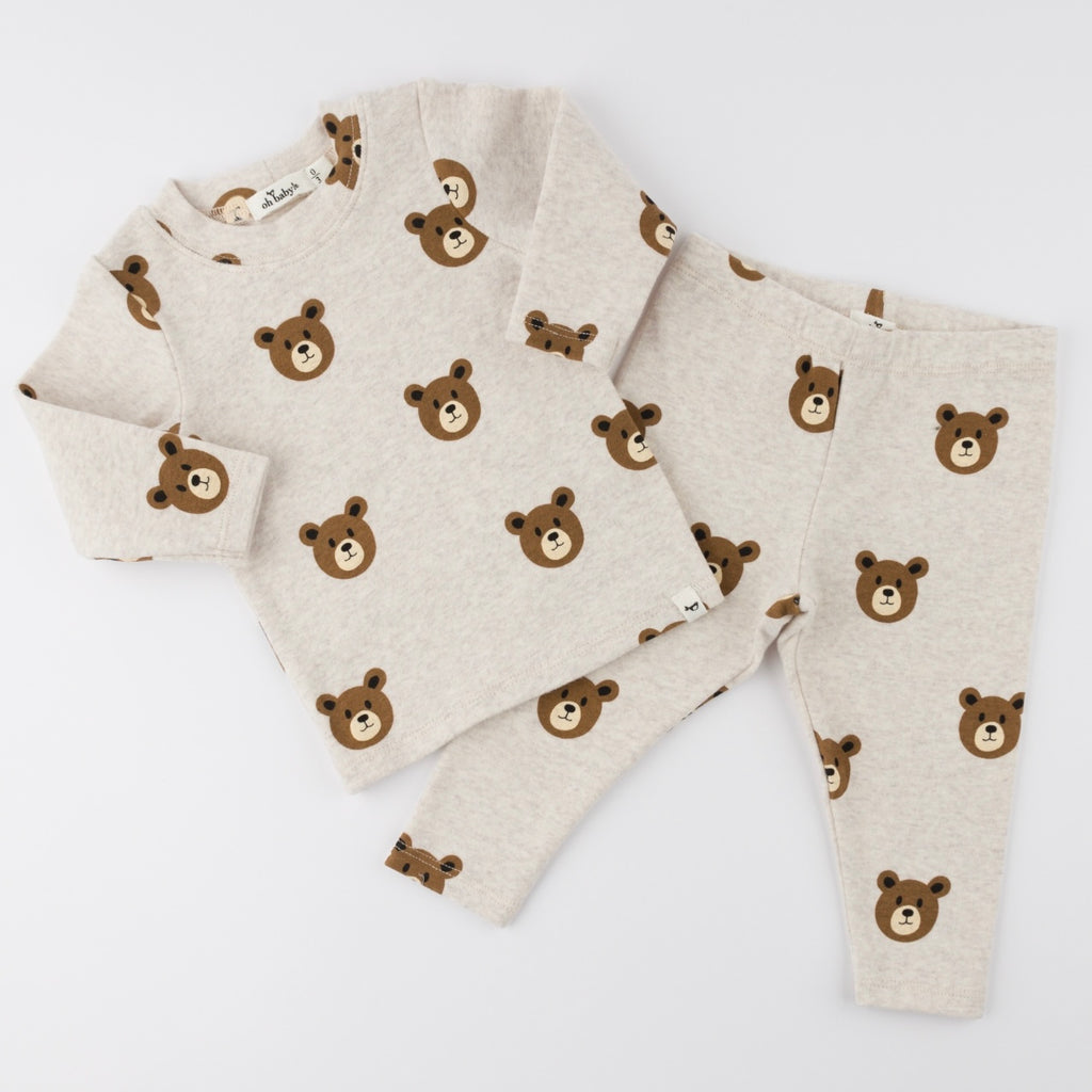 Oh Baby! Teddy Bear Faces Print 2pc Set ~ Malt
