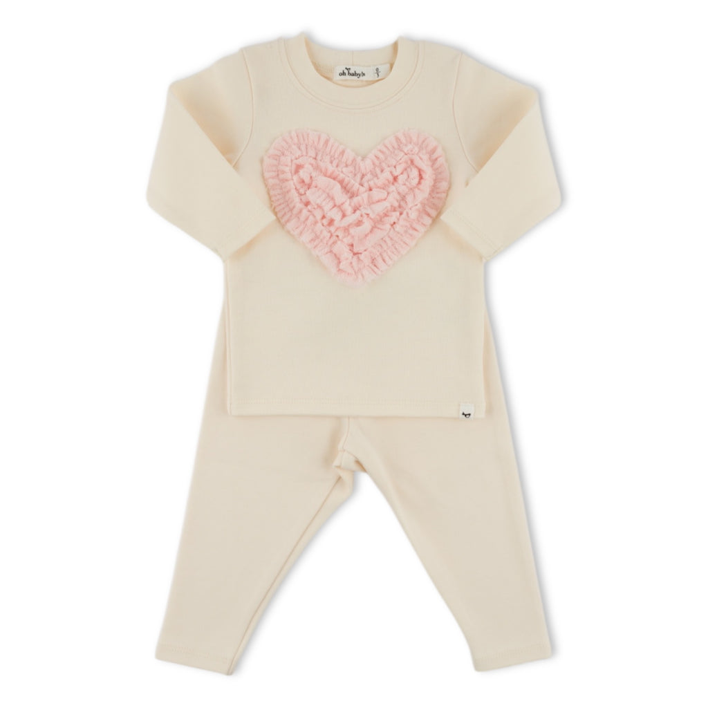 Oh Baby! Terry Ruffle Heart 2pc Set ~ Milk