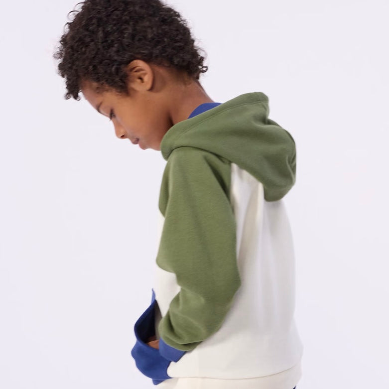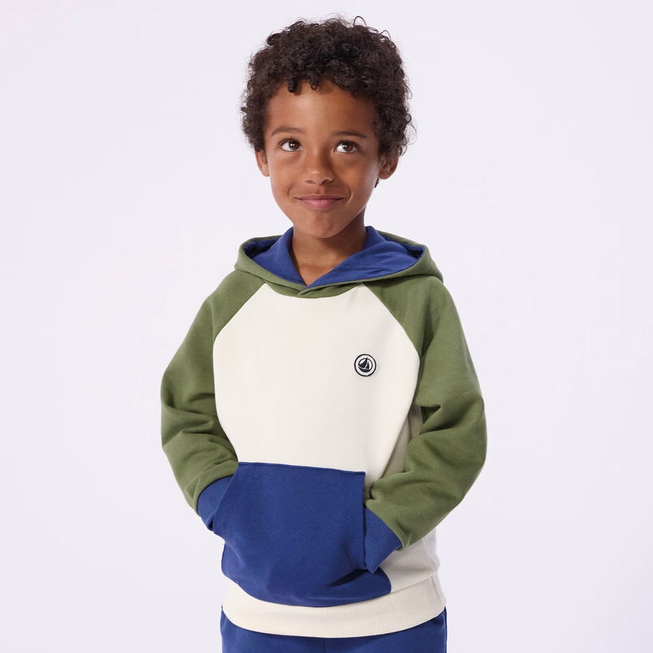Petit Bateau Boys Color Block Hoodie & Joggers Set ~ Olive Green Multi