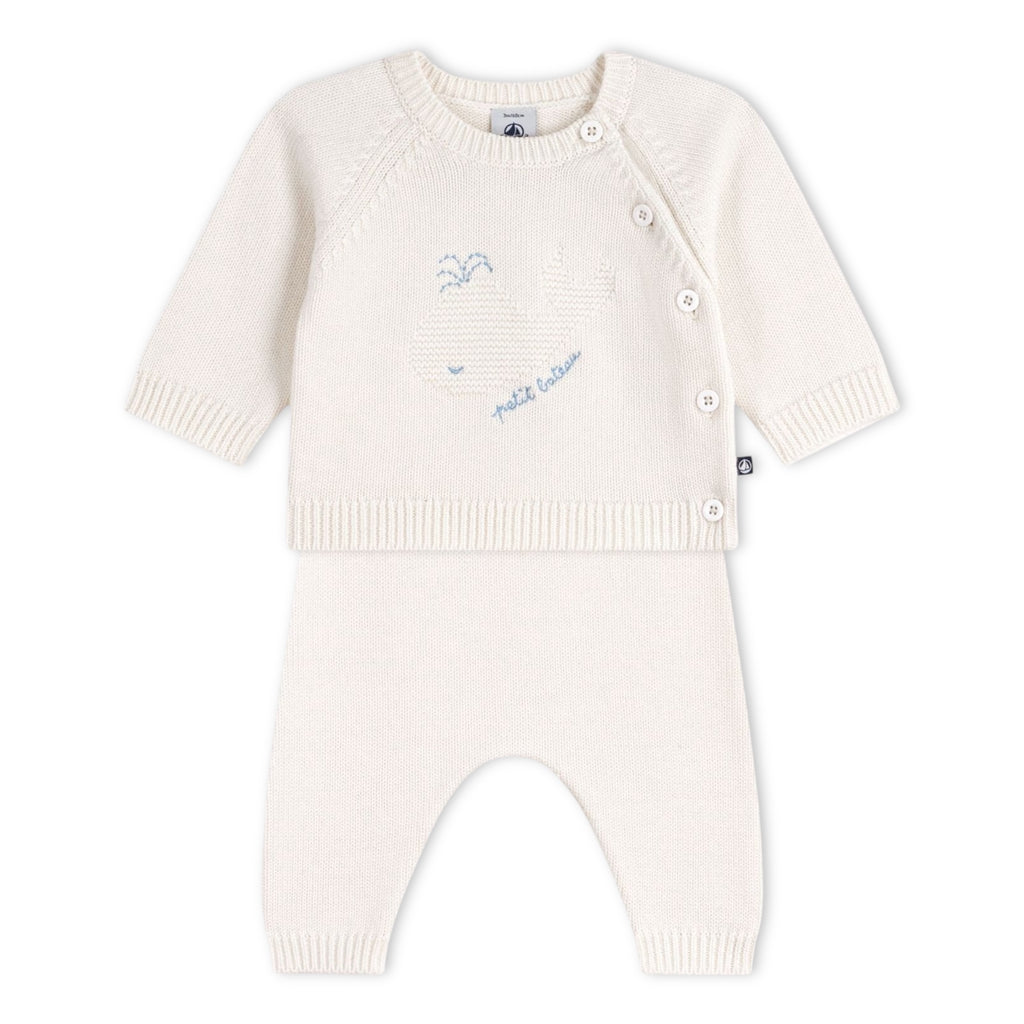 Petit Bateau Knit Whale Sweater & Pants Set ~ White