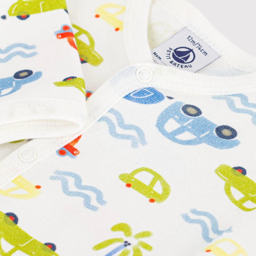 Petit Bateau l/s Cars Print Romper ~ White Multi