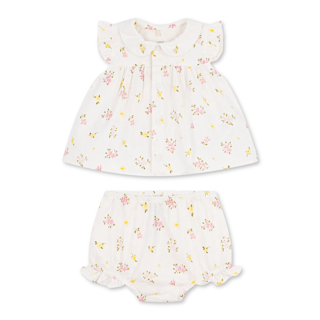 Petit Bateau Floral Print s/s Blouse & Bloomer Set ~ White Multi