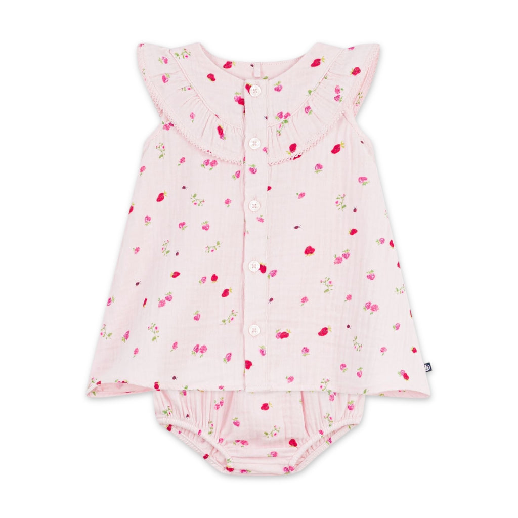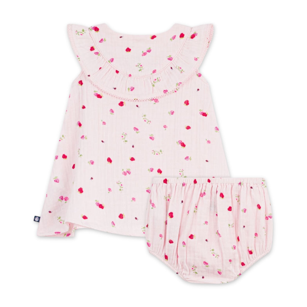 Petit Bateau Sleeveless Berry Print Dress w/ Bloomer ~ Pink
